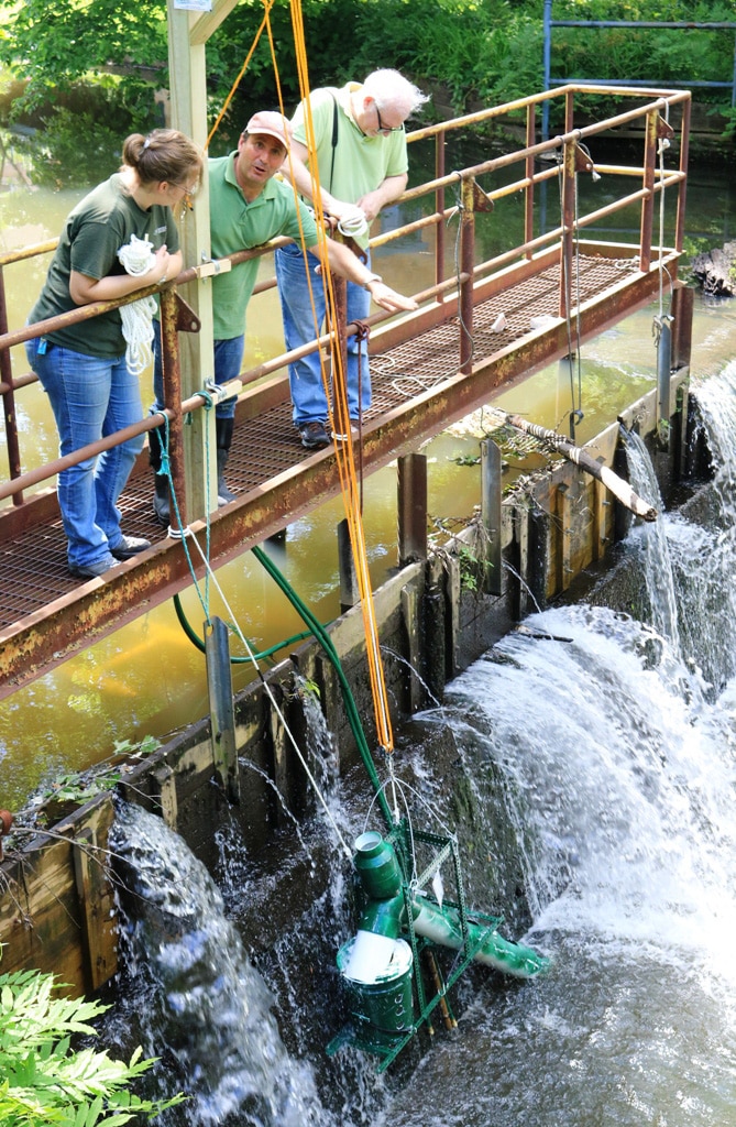 Volunteers stand on the Sparkill Creek Eelevator, a project seeking to provide passage for American eels over barriers in the Hudson Valley.