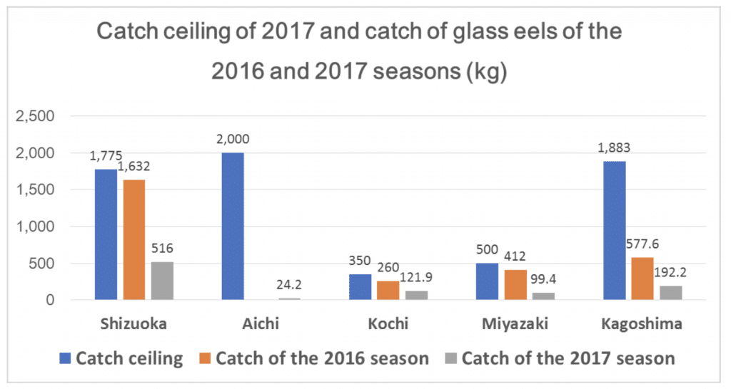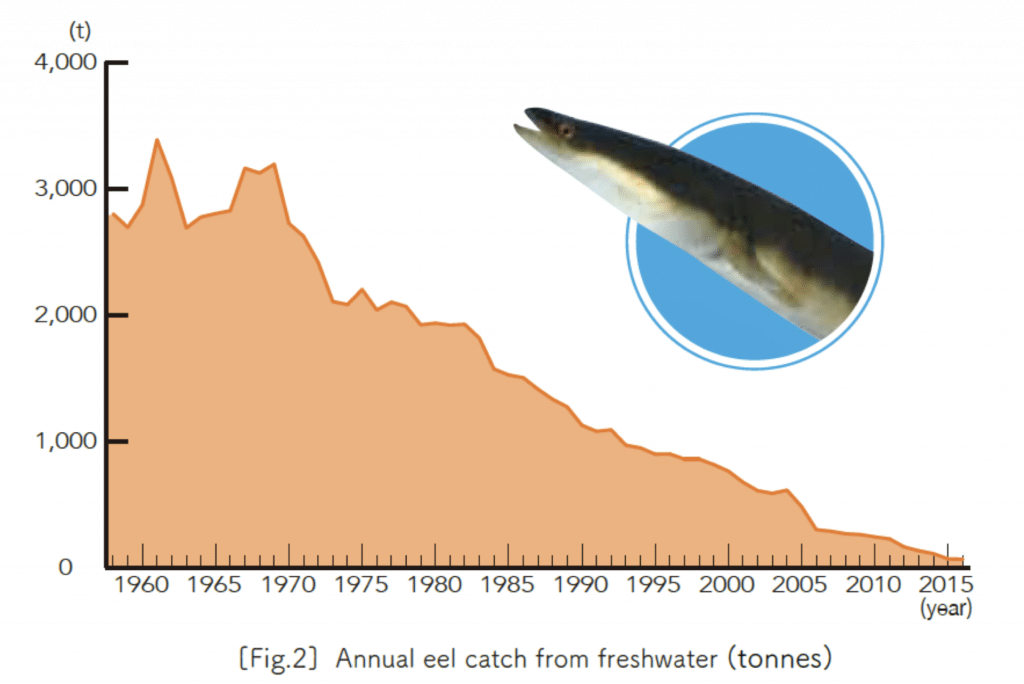 CITES CoP 17 decided to investigate whether it is sustainable trade also for non-listed eel species (Dec 17.186-189). The Japanese eel is a non-listed species, however the catch have been drastically decreasing,and Japan imports glass eels for aquaculture. Figures from the Report “News report on the catch of glass eels and its import” Yasuhiro SANADA Original(Japanese) http://y-sanada.blog.so-net.ne.jp/2018-04-07